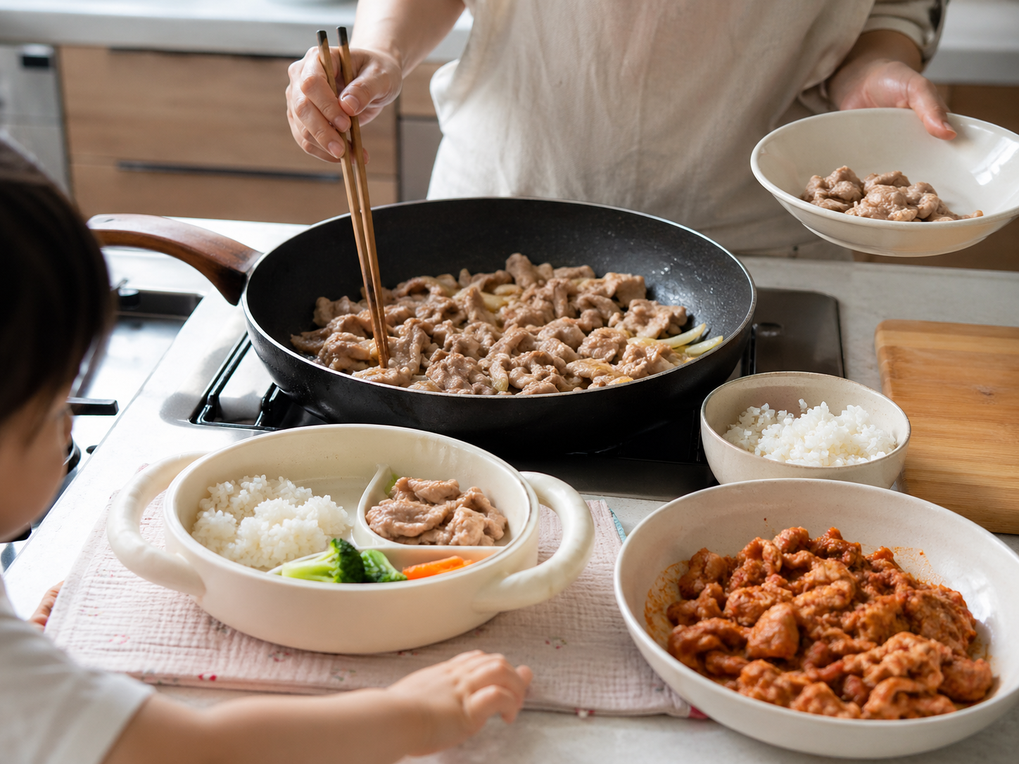 예를 들어 제육볶음을 할 때도 완전히 따로 두 가지를 만드는 건 아니고, 간장까지는 거의 비슷하게 넣고 조리하다가 아이 먹을 부분은 먼저 덜어냅니다. 그다음 어른 먹을 것에만 고추장이나 고춧가루를 더 넣는 식으로 마무리합니다. 이렇게 하면 재료도 따로 두 번 손질할 필요가 없고, 기본 메뉴는 같으면서도 아이 먹는 부분만 자극적이지 않게 조절할 수 있어서 훨씬 수월했습니다.